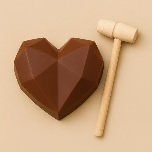 הכירו את קופסת הניפוץ – קופסה חלולה משוקולד איכותי בצורת לב (כ-15×12 ס"מ), שבתוכה מסתתרות הפתעות מתוקות: שוקולדים, סוכריות, או הפתעות אחרות לפי בחירתכם.
